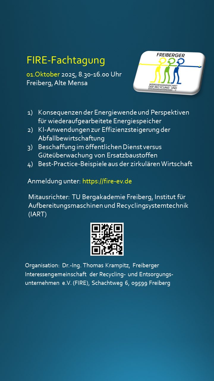 Am 01. Oktober 2025 findet in der Alten Mensa, Freiberg die nächste FIRE-Fachtagung statt.