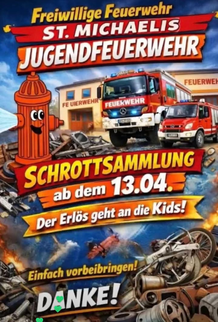 Die Freiwillige Feuerwehr St. Michaelis ruft zur großen Schrottsammelaktion auf – und DU kannst helfen! 💪♻️